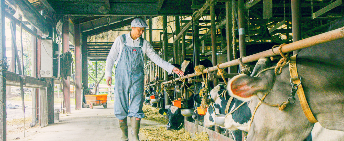 熊本県合志市にある当牧場では、自家産堆肥で畑を作り無化学肥料でトウモロコシを栽培し、やく100頭の乳牛を飼養し、乳製品を製造しています。また、1995年から酪農教育ファーム認証牧場として、搾乳体験やバター作り体験、トウモロコシ畑迷路等を通して「命の温かさと命(食)の循環」を体感してもらう活動を開始。毎年、修学旅行やクラスレクレーション等で子供達を受け入れております。酪農家の強みは、「飼養管理と遺伝改良」により牧場オリジナルのミルクやお肉を提案することが出来ること。何かを添加して付加価値をつけるのではなく、世界を旅して乳製品を食べ歩きながら、ミルクを磨き上げて他の乳製品との違いを表現していく事を目指しております。